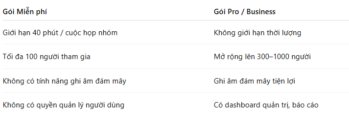 Pro – Phù hợp cá nhân & nhóm nhỏ (tối đa 100 người)